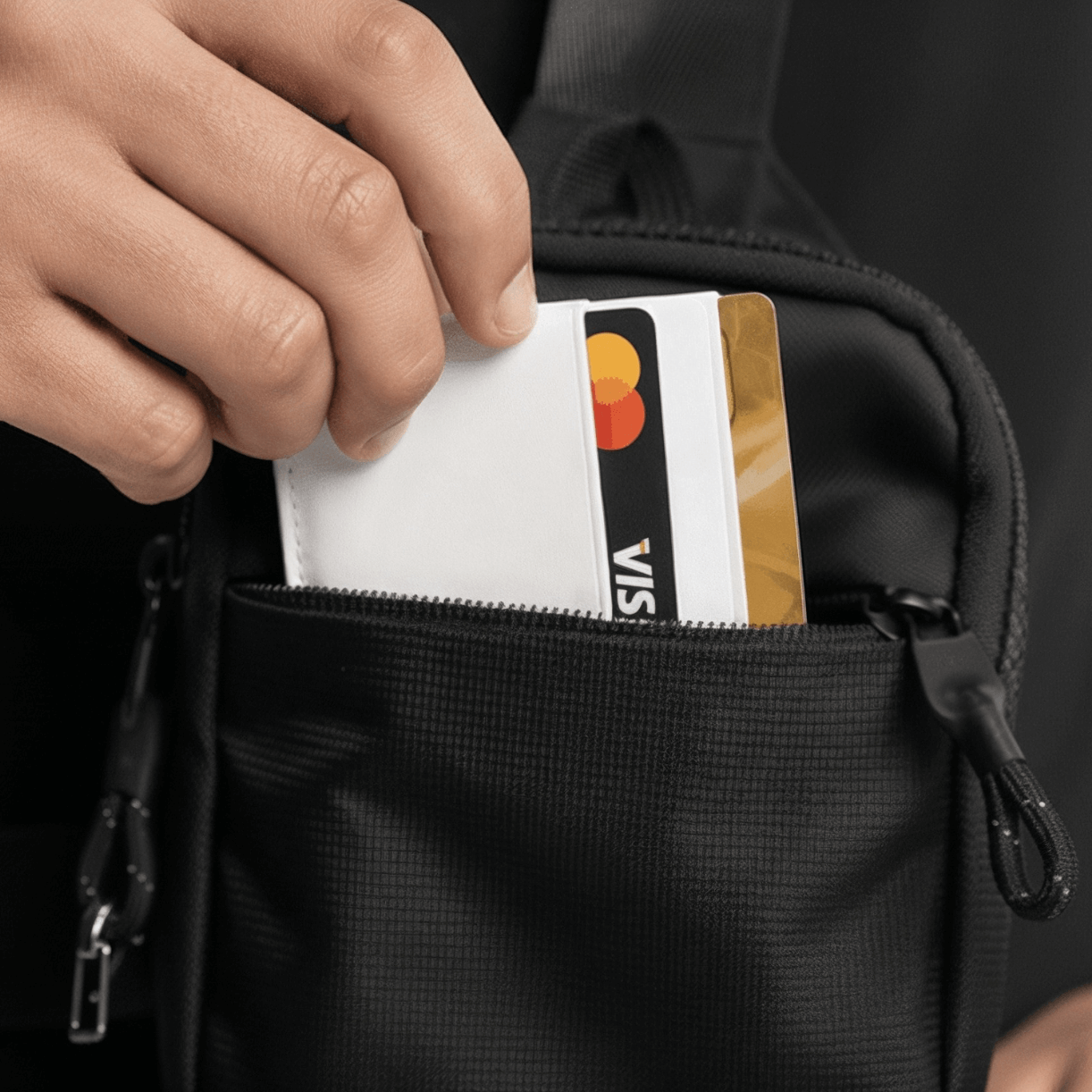 Nos sacoches sont doublées d’un tissu technique anti-RFID qui agit comme un véritable bouclier contre les scans non autorisés. Grâce à sa conception légère mais efficace, il protège vos cartes bancaires, passeports et pièces d’identité contre le vol numérique, pour voyager et vous déplacer en toute tranquillité.